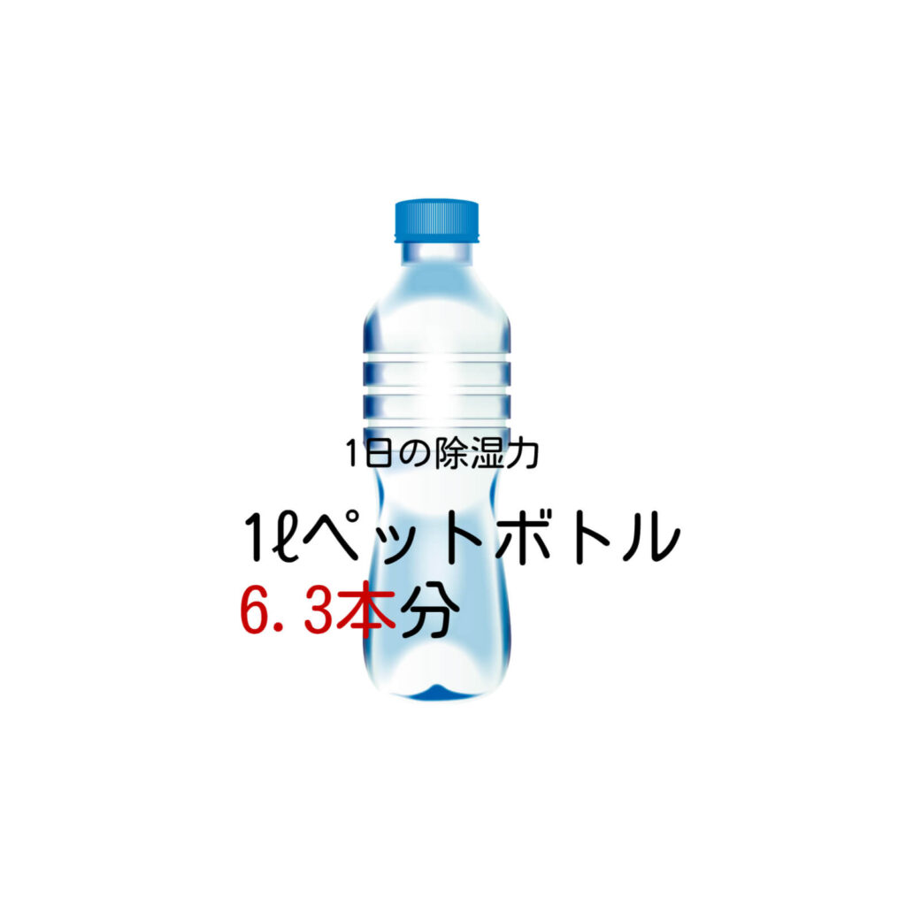 たとえばコロナ衣類乾燥除湿機 Pシリーズは、1日1Lのペットボトル約6本分の除湿能力(室温27℃・相対湿度60%を持続する室内で24時間60Hzで運転した場合)です。
